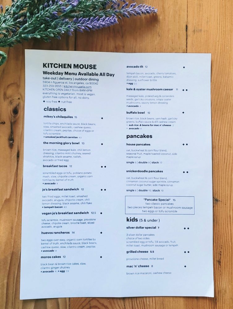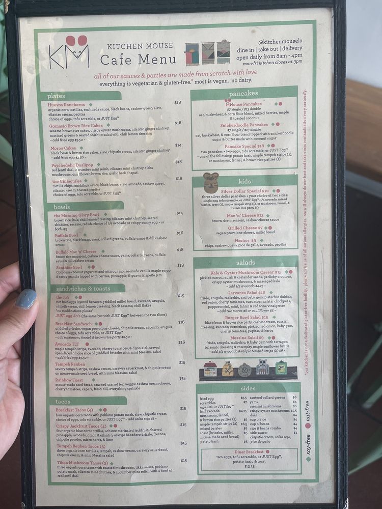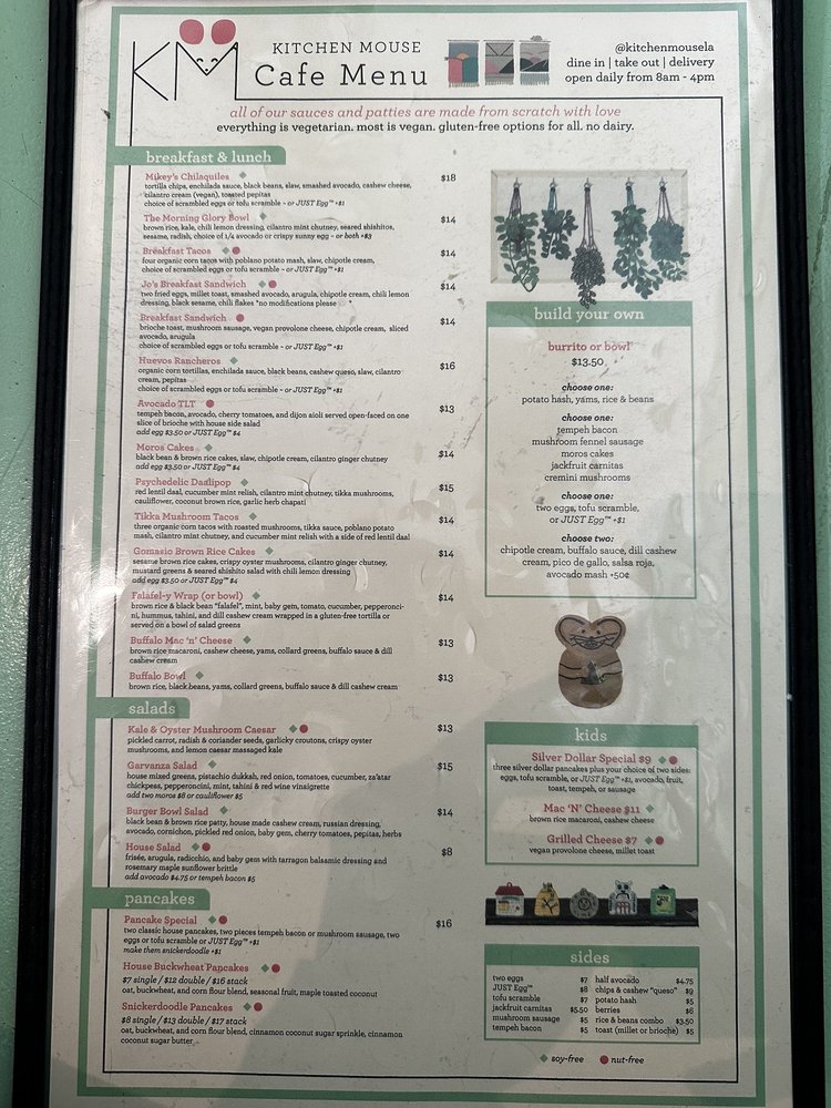 Kitchen Mouse Cafe in Highland Park, CA, is a vegan gem offering a diverse menu of breakfast, brunch, and lunch options. The cafe prides itself on its inclusive and accessible environment with vegan and vegetarian choices, along with gluten and nut-free options. The cozy and hipster atmosphere, along with friendly staff, sets the tone for a delightful dining experience. Customer reviews rave about the innovative dishes like Buffalo Bowl, Kale & Oyster Mushroom Caesar Salad, and Gomasio Brown Rice Cakes. The carefully crafted menu showcases creative flavors and textures, leaving diners impressed and satisfied. With a commitment to sustainability and community, Kitchen Mouse Cafe is a standout destination for those seeking delicious vegan fare in a welcoming space.