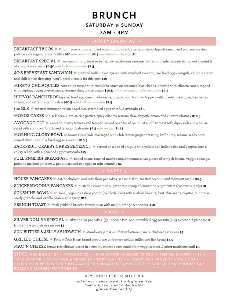 Scrambled eggs or tofu, serrano slaw, chipotle cream, poblano mashers, and organic corn tortillas. Soy free and nut free.